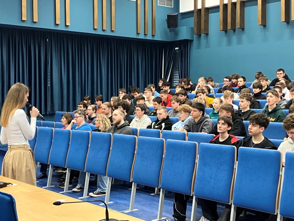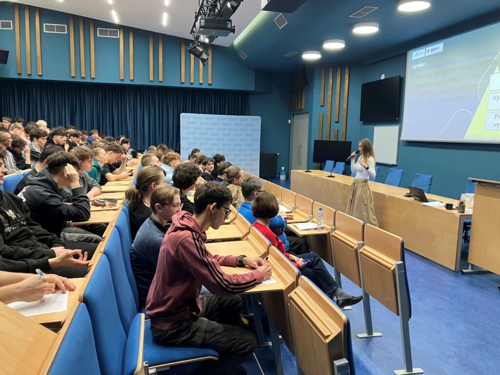 Dňa 12. 3. 2026 sa u nás na Murgaške uskutočnila prednáška na tému Duševné vlastníctvo okolo nás – prednáška bola určená pre žiakov a žiačky tretieho ročníka. Prednáška sa konala práve v čase, keď naši štvrtáci a štvrtáčky maturovali z matematiky.