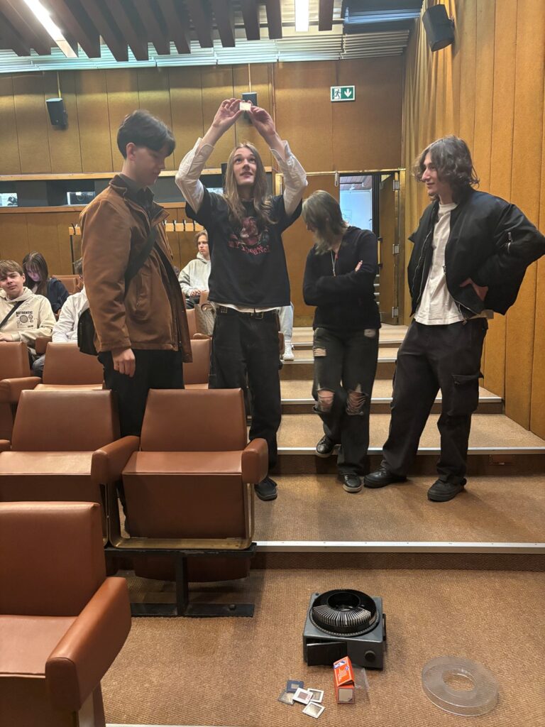 Trieda III.M sa napríklad vybrala do kina Múzea SNP v Banskej Bystrici. Tretiaci a tretiačky z odboru multimédiá sa tu ponorili do sveta filmovej tvorby. Pán Ivan Školuda zo spoločnosti Cinema+ im ukázal rozdiely medzi 16 mm, 30 mm a 70 mm filmom, premietanie na originálnych prehrávačoch aj fotografie na diapozitívoch.